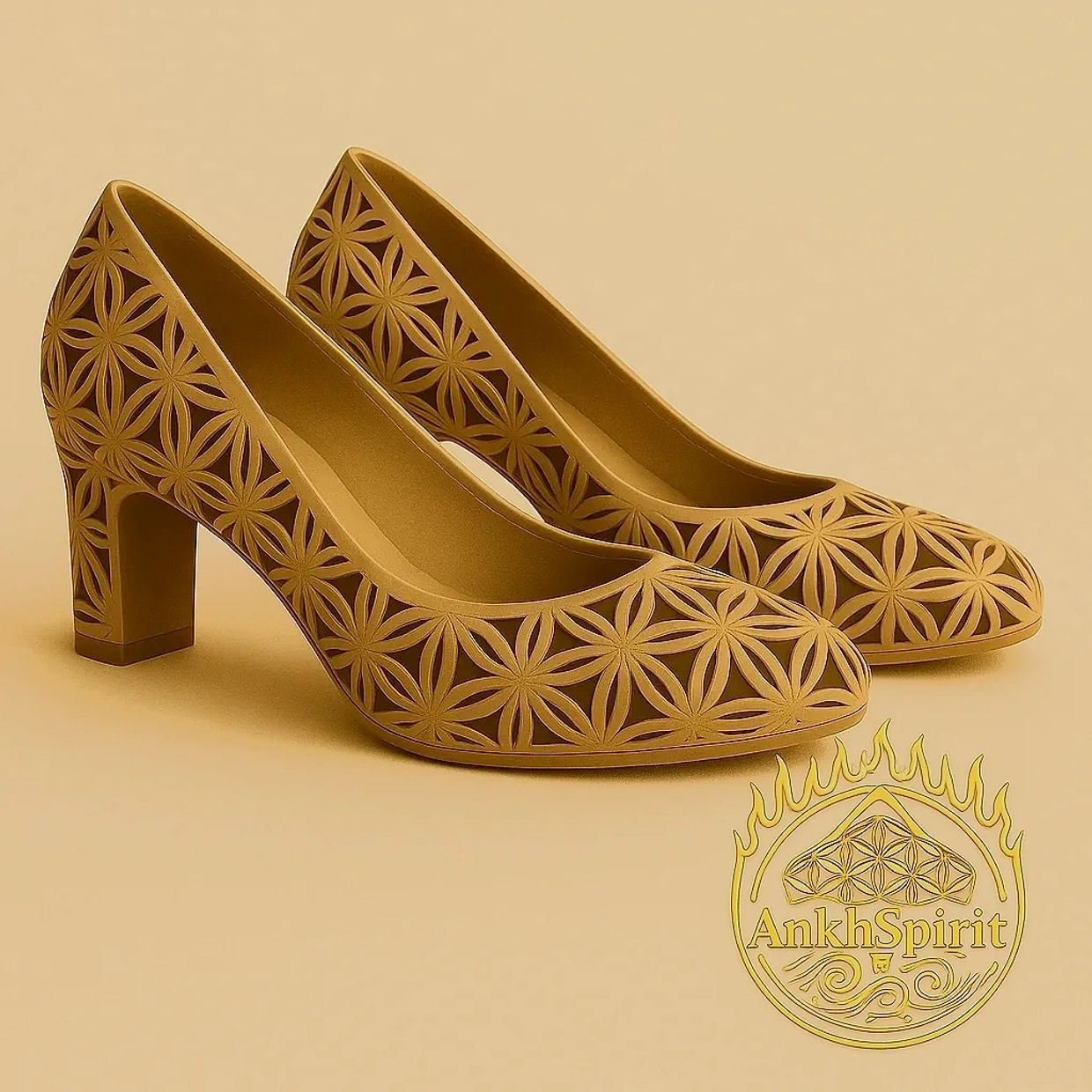 The ISIS heel is an elegant and comfortable women’s shoe designed to enhance natural posture and refined style. With its modern design and Flower of Life pattern, it’s a unique heel perfect for evenings, special occasions, or everyday wear.