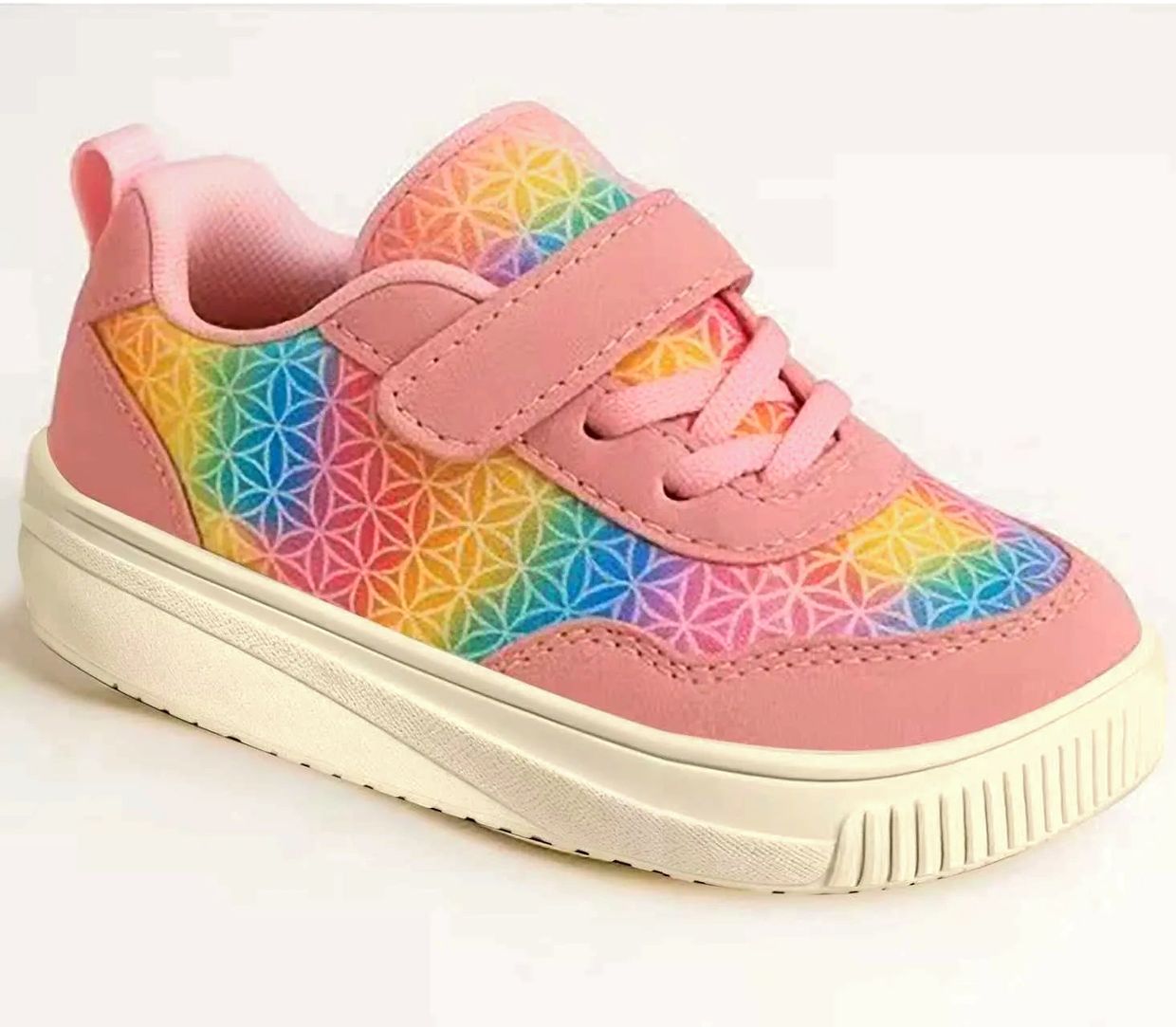 The Thalia Kids Sneakers are lightweight, comfortable, and secure children’s shoes designed for school, play, and everyday adventures. With their thick sole, padded interior, and rainbow Flower of Life pattern, they’re colorful, easy to wear, and truly unique.